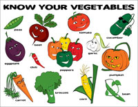 $3.00 (includes shipping and handling) A sturdy 9" x 12" laminated place mat to help children identify their vegetables while they are eating. |